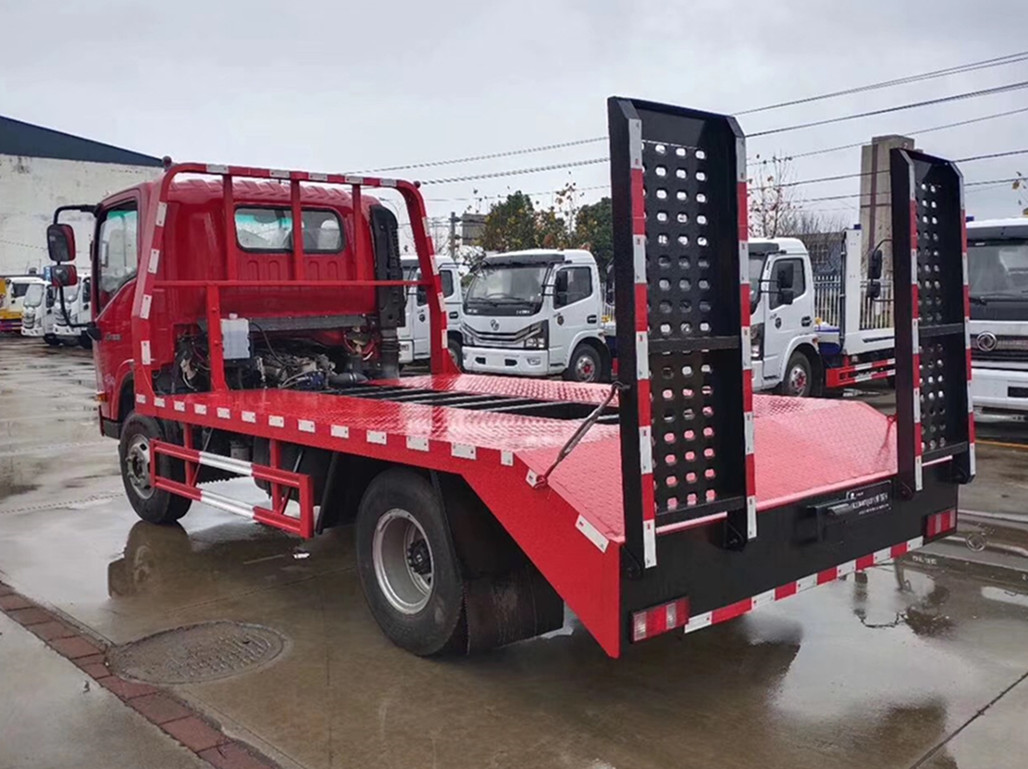 整車配置: | 底盤配置:大運平板運輸車,1995駕駛室,配備兩款云內130馬力、云內170馬力發動機可選,帶增壓,200雙層大梁,8.25R16鋼絲輪胎,五檔帶副或八檔變速箱,帶方向助力,ABS,氣剎,原廠空調,電動玻璃,中控鎖。 上裝配置:錳鋼材質、橫梁采用100*100方管,間距25公分,面板采用4mm或5mm厚花紋板,板面鋪設防滑鋼條,車尾雙彈簧加強型爬梯,便于工程車上下安全,斜坡下帶后支腿,可選裝平板板面(手動或液壓)伸縮加長、選裝(手動、液壓)折疊爬梯;該車有國家環保公告,可在全國各地上牌。 | ||