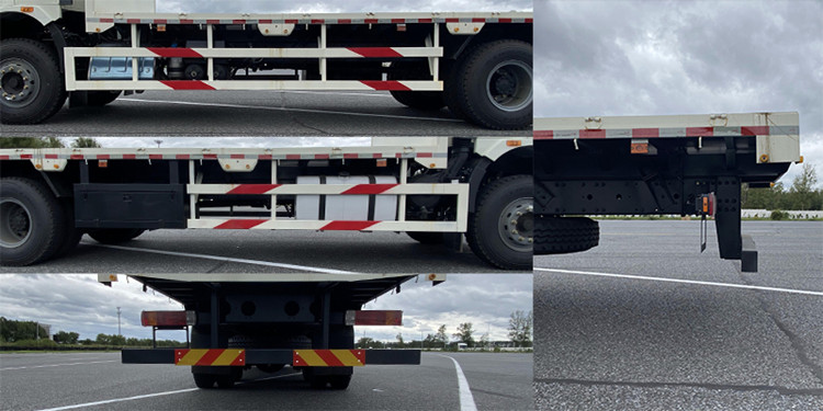 整車配置: | 底盤配置:《大柴320馬力,解放10檔變速箱,電動玻璃,電動后視鏡,空氣減震座椅》;《大柴280馬力,陜齒9檔變速箱,手動玻璃,機械減震座椅》457后橋,270雙層大梁,11.00R20鋼絲胎,原廠空調,400L油箱,新規;該車有國家環保公告和燃油公告,可在全國各地上牌、辦理營運證。 上裝配置:橫梁采用120*120方管,間距25公分,面板采用8mm厚花紋板或10mm、12mm平板,加密斜支撐,板面鋪設防滑鋼條,車尾雙彈簧加強型爬梯【三道筋】,便于工程車上下安全,斜坡下有后支腿,選裝平板板面【液壓或手動】伸縮加寬、選裝【液壓或手動】折疊爬梯。 | ||