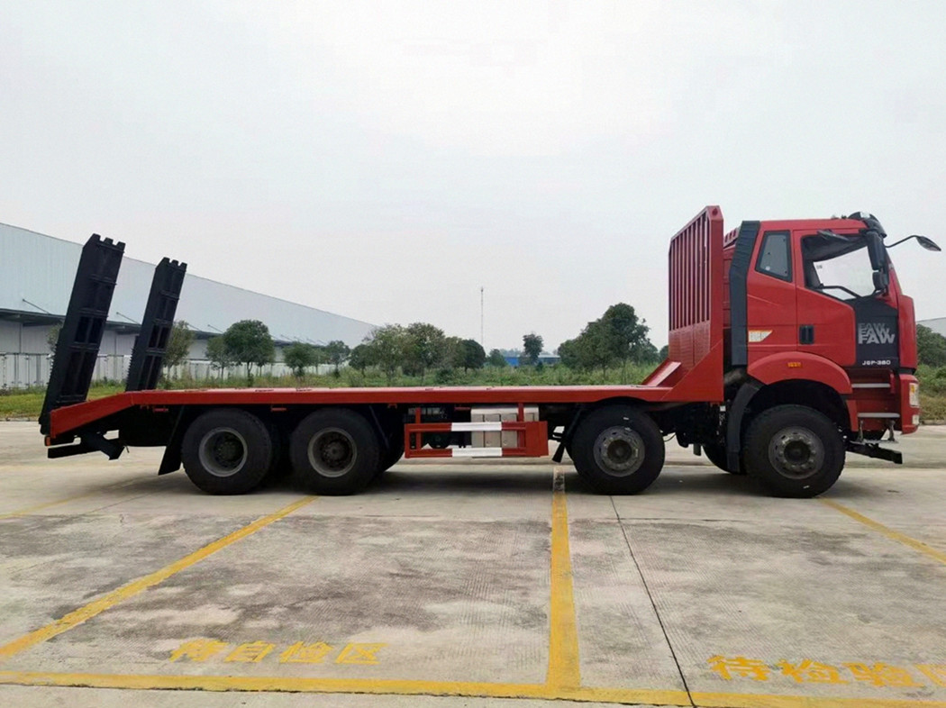 整車配置: | 底盤配置:新J6P排半駕駛室,一汽380馬力/420馬力,解放12檔變速箱帶高低檔 ,11.00R20鋼絲胎,13噸或16噸后橋,300雙層大梁,電動玻璃,空氣減震座椅,400L油箱,原廠空調。 上裝配置:橫梁采用120*120方管,間距25公分,面板采用8mm厚花紋板或10mm、12mm平板,加密斜支撐,板面鋪設防滑鋼條,車尾雙彈簧加強型爬梯【三道筋】,便于工程車上下安全,斜坡下有后支腿,選裝平板板面【液壓或手動】伸縮加寬、選裝【液壓或手動】折疊爬梯;該車有國家環保公告和燃油公告,可在全國各地上牌、辦理營運證。 | ||