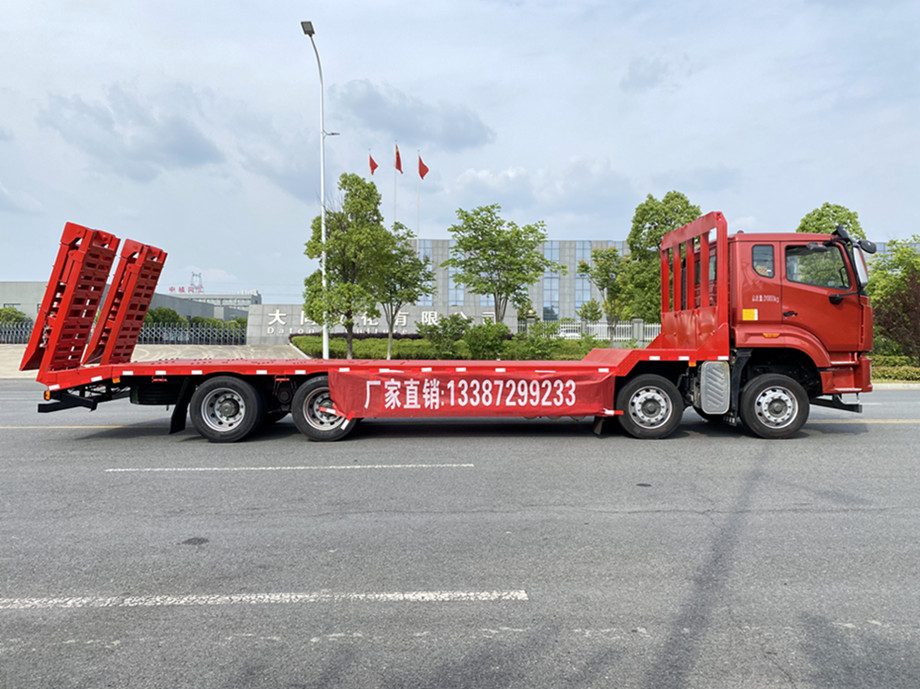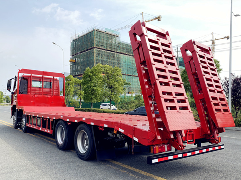 整車配置: | 底盤配置:德國曼430馬力,豪沃10檔,軸距1800+4600+1350,德國曼13噸后橋,300雙層車架,11.00R20鋼絲胎/315/60R22.5真空胎,四點懸浮車身,氣囊座椅,自動空調。 上裝配置:橫梁采用120*120方管,間距25公分,面板采用8mm厚花紋板或10mm、12mm平板,加密斜支撐,板面鋪設防滑鋼條,車尾雙彈簧加強型爬梯【三道筋】,便于工程車上下安全,斜坡下有后支腿,選裝平板板面【液壓或手動】伸縮加寬、選裝【液壓或手動】折疊爬梯;該車有國家環保公告和燃油公告,可在全國各地上牌、辦理營運證。 | ||