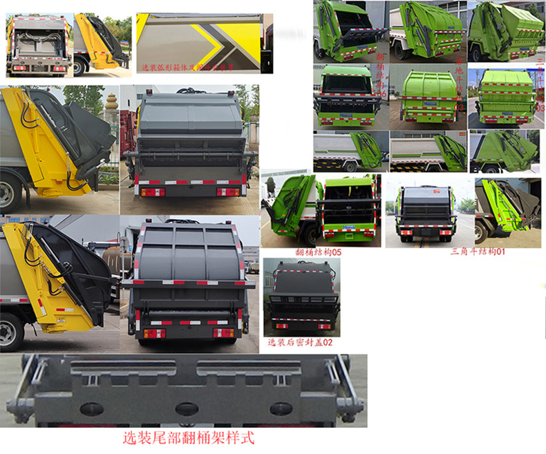 基本配置: | 底盤配置: 配置一:云內126馬力,新款五十鈴1580白色單排可翻轉駕駛室,160MM大梁,大梁寬度740MM,6檔變速箱,6.00R15輪胎,油剎,24V雙駱駝電瓶,1043后橋,動轉,ABS,原廠空調。 配置二:濰柴130馬力,新款五十鈴1680白色單排可翻轉駕駛室,180MM大梁,大梁寬度800MM,6檔變速箱,6.50R16輪胎,斷汽剎,24V雙駱駝電瓶,1046后橋,動轉,ABS,原廠空調。 上裝配置:1,新款弧形箱體,增加箱體容積,整車更美觀,箱體為碳鋼制作,底箱及填充器采用加厚鋼板,耐腐蝕使用壽命長,一層油漆噴涂處理。2,裝載循環時間=25S;垃圾排出時間≤25S;填料提升角度≥95°,壓縮比例為1/3-1/2,一裝部分具備雙向壓縮和蠕動壓縮功能帶。3,新款結構加大填充器,手電一體操作模式,帶駕駛室操作,帶駕駛室一鍵卸料功能,3308軸距以上配遠距離遙控器,尾部裝置可以選裝垃圾翻轉斗,掛桶翻轉板或者大落地斗。4,CAN總線控制方式,光電開關加延時雙系統控制,降低故障率,方便維修。5,帶夜間照明裝置,6方)及以上車型帶雙污水箱,污水箱排水球閥和排水蓋,增加排水管,防止濺水,人性化設計。6,標配選用:威森搏樂油缸,威森搏樂多路閥,3308軸距以上配備壓實閥(背壓閥),所有車型標配單泵。5000軸距、后八輪車型標標配雙聯泵,大油量多路閥。 選裝配置:大落地斗,帶后擺臂,另帶單一掛桶裝置,尾部密封蓋手動/氣缸控制,雙聯泵(多路閥聯數增加,液壓泵加大,液壓油箱加大)。 | ||