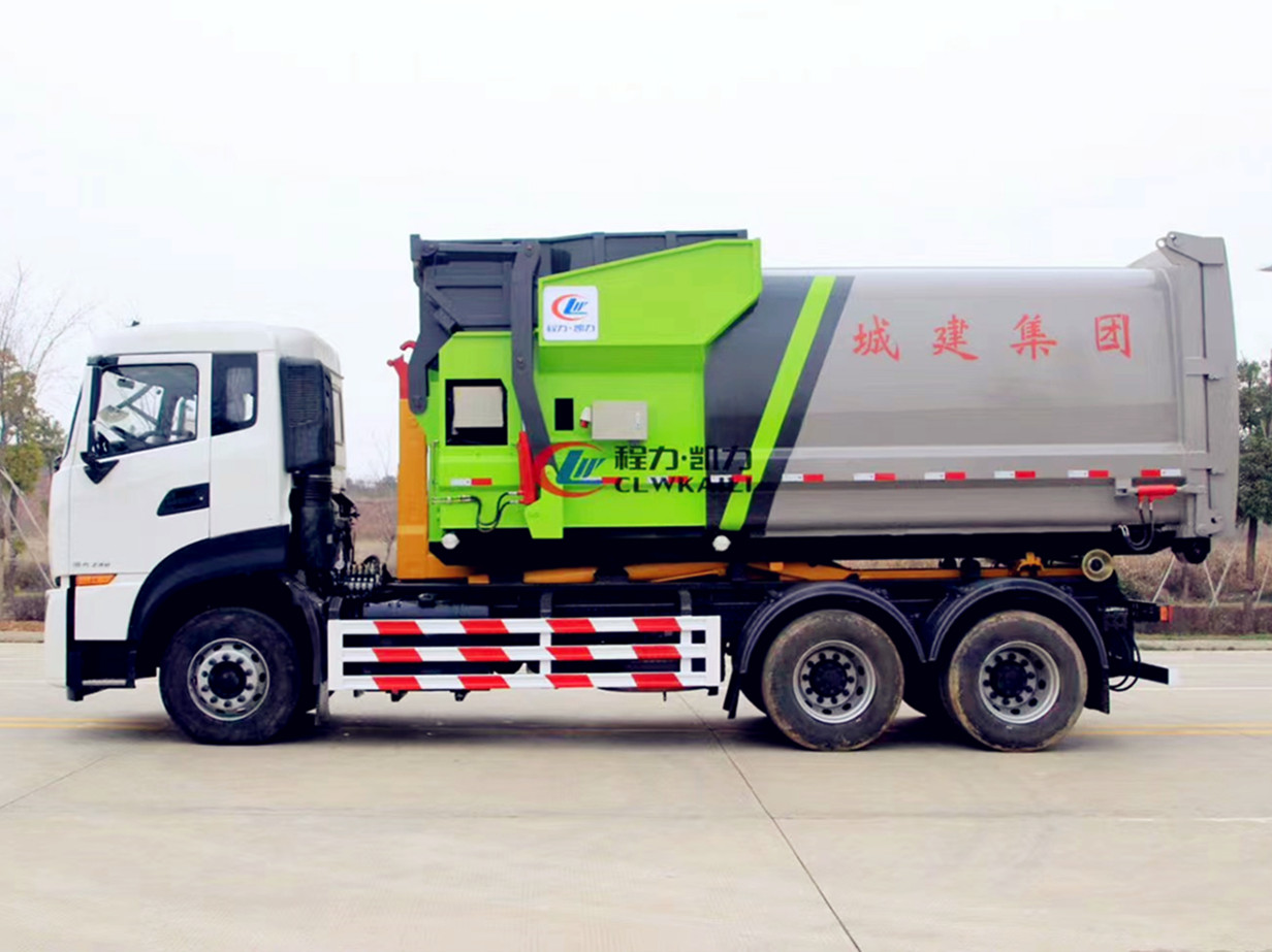 基本配置: | 底盤配置: 配置一:康明斯290馬力,D320排半豪華KL駕駛室,法士特9檔變速箱,前橋5.5噸,雙10噸后橋,11.00鋼絲胎,300雙層大梁,氣囊座椅。 配置二:龍擎350馬力,D310排半VL駕駛室,法士特9檔變速箱,前橋5.5噸,雙10噸后橋,11.00鋼絲胎,300雙層大梁,氣囊座椅。 上裝配置:上裝部分由伸縮拉臂、主臂油缸、活動套臂、套臂油缸、附車架、翻轉架、支撐腿、鎖緊架、鎖緊油缸及多路換向閥等組成。拉臂帶伸縮功能,可以通過改變力矩和加大壓力的方式拉升更大的重量,配備垃圾斗后適合裝載建筑垃圾等重物,液壓泵為合肥皖液、多路閥、液壓鎖、平衡閥、行程閥、采用威森博樂,油缸為定制頂尖合資威森博樂品牌。 | ||