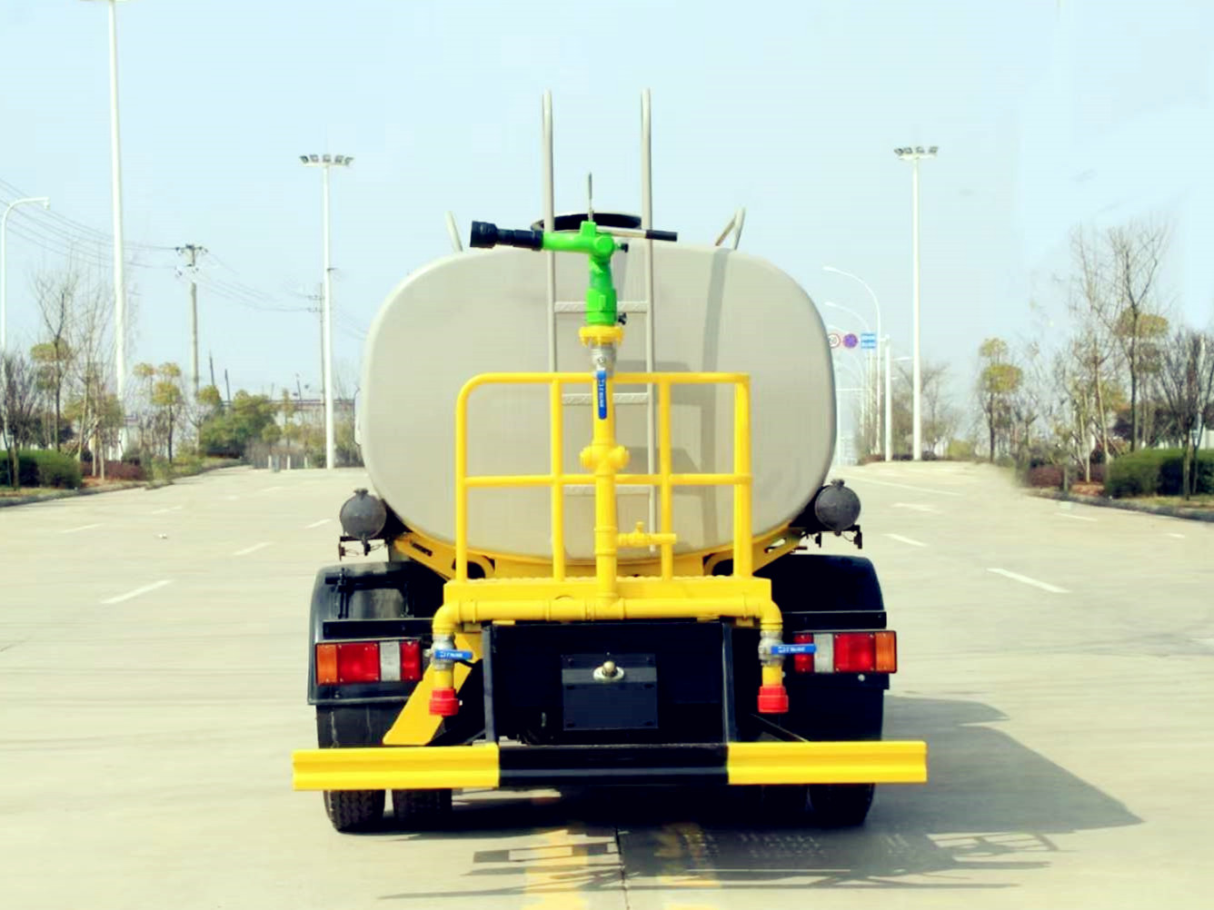 基本配置: | 底盤配置:江鈴115馬力,格特拉克五檔變速箱,7.00鋼絲胎,前橋3.5噸,后橋5噸,汽剎、中控鎖、電動車窗,多功能方向盤,ABS,空調。單排駕駛室。 上裝配置:酒水車標配:武鋼優質碳鋼制作罐體,采用自動焊接工藝,整車功能為萬向前沖、后酒、側噴、帶后工作平臺及綠化s型高炮,前沖≥18米,綠化高炮≥35米,配備億豐/天億水泵,自流閥及消防接口各一個,水管兩根,大通徑球閥,邊燈帶電,頂部帶兩個小警燈,沖孔平臺,8噸以上根據公告加高位花灑兩個。 選裝配置:灑水車加裝部分:加裝箭頭燈/長警燈/選裝威龍泵40/50丨60/90丨50/110,加裝氣缸控制/氣動球閥/加裝弧形噴霧/工具箱/消防灑水卷簾門/腰沖/加裝前萬向鴨嘴/前沖改為前萬向鴨嘴/萬向對沖/高位花灑/鐵炮筒/兩相電機泵/三相電機泵/不銹鋼高炮/管道加粗/隔艙/標準化/罐體加厚/防銹(罐內鐵紅環氧防銹底漆)/防腐(環氧樹脂防腐面漆)特殊材質電詢/取力器保護/低水位報警/語音提示系統. | ||
