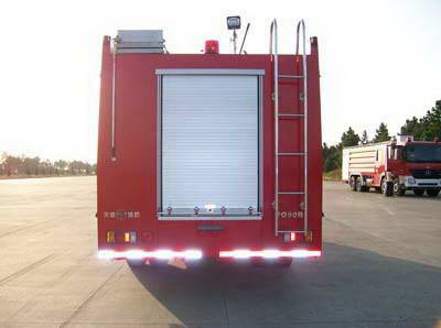 水罐容積:5.0立方米,水罐尺寸:2518×1334×1488 mm,采用6HK1-TC型發動機,10.00R20-16PR,10.00-20-16PR, 11.00-20-18PR型輪胎, 后伸:195mm