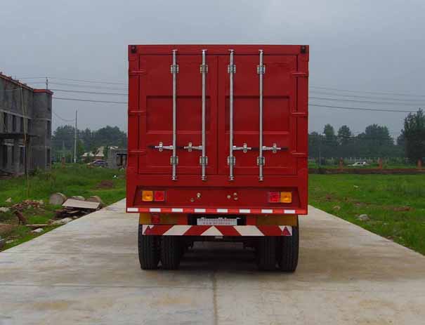 整車備注: | 車箱頂部封閉不可開啟。車箱兩側可選裝一對開,二對開,或不開門結構。側防護采用冷彎槽鋼/Q235-A,螺栓連接。后防護采用冷彎槽鋼/Q235-A,焊接連接。后防護截面高度尺寸150mm, 截面寬度尺寸50mm,下邊緣離地高度540mm。ABS生產企業:廣州科密汽車制動技術開發有限公司,型號:CMFKX。 | ||