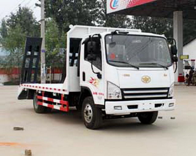 解放虎V平板運輸車,主要運輸一些中小型挖掘機(jī),裝載機(jī),收割機(jī)等一些不可拆卸物體;虎平板運輸車上戶噸位4.005噸,經(jīng)過測試實際可拉貨物12噸,適合載重10噸及以下的物體的運輸,配備錫柴120馬力發(fā)動機(jī),帶方向助力,五檔變速箱、增壓、取力器方便爬坡行駛,面板采用5mm厚花紋板,板面鋪設(shè)防滑鋼條,使您運輸途中更加安全,車尾配備雙爬梯,便于工程車上下安全,該車有國家燃油公告,可在全國各地上牌。