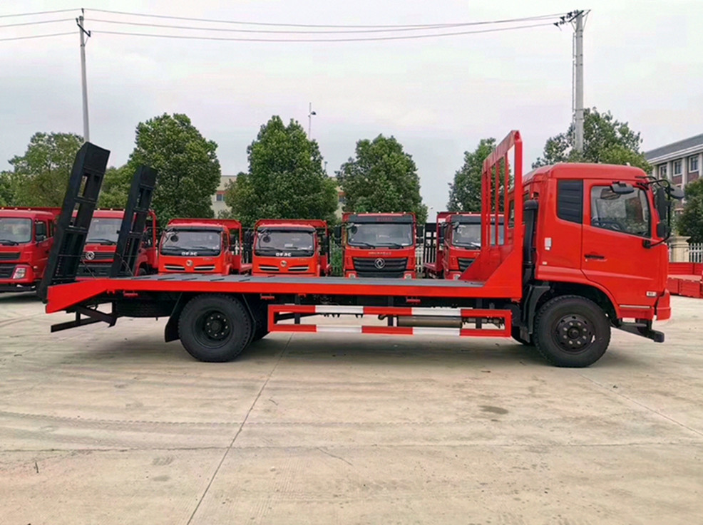 整車配置: | 底盤配置:東風天錦平板運輸車上戶噸位9.15噸,經過測試實際可拉貨物18噸,適合載重18噸及以下的物體的運輸,配備風神180馬力國五發動機,法士特八檔變速箱高低檔、電動門窗、中控鎖,250雙層大梁,原廠空調、ABS、行車記錄儀、中控鎖,前橋4.5噸,后橋9噸,氣囊座椅。 上裝配置:橫梁采用100*100方管,間距25公分,面板采用5mm或8mm厚花紋板,板面鋪設防滑鋼條,車尾雙彈簧加強型爬梯,便于工程車上下安全,斜坡下有后支腿,選裝平板貨箱帶墻板設計,選裝(液壓、手動)折疊爬梯;該車有國家環保公告和燃油公告,可在全國各地上牌辦理營運證。 | ||