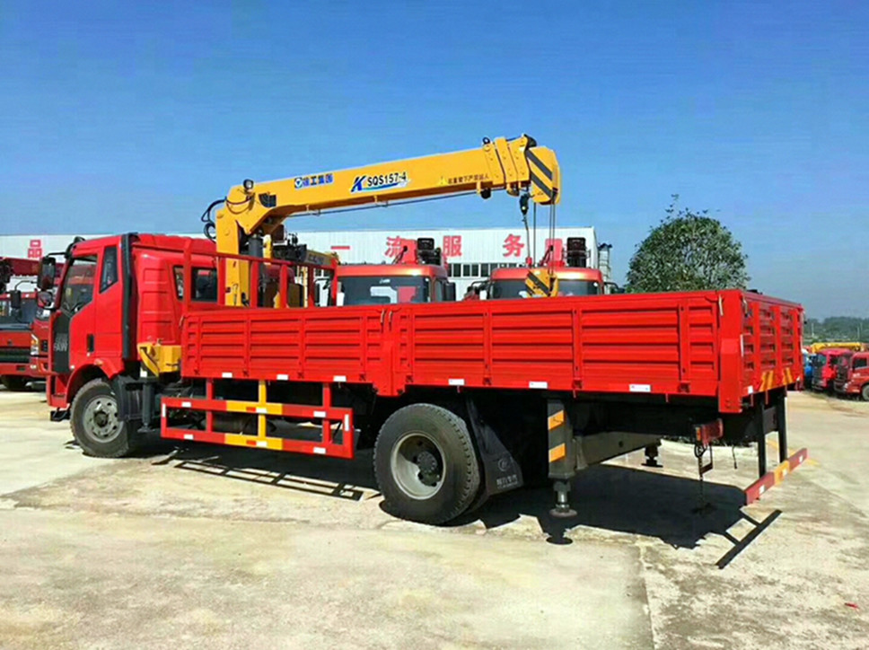 整車配置: | 底盤配置:配備大柴180馬力【四缸】、220馬力【六缸】國五發動機,法士特八檔變速箱(高低速)、237mm三層大梁(龍骨架一次車型)、前橋4.5噸、后橋9噸/10噸、原廠空調、氣囊座椅、ABS、行車記錄儀,帶原廠取力器、發動機室外啟停功能;該車有國家環保公告和燃油公告,可在全國各地上牌、辦理營運證。 上裝配置:底板采用3mm或5mm厚花紋板,橫梁采用800*600槽鋼(間距25公分),貨箱立柱采用加強型槽鋼、兩兩相扣加固焊接,全通副梁,選裝自卸貨箱設計,選裝貨箱伸縮加長/加寬設計;選裝徐工吊機、三一吊機、長興吊機、程力吊機等全國20多種品牌(直臂、折臂)吊機,帶原廠后支腿。 | ||