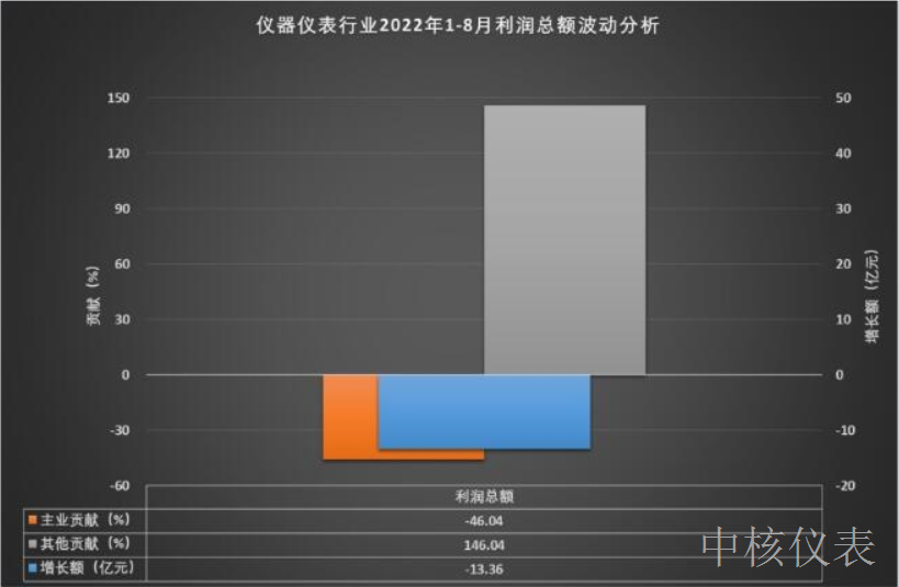1.3 儀器儀表行業(yè)2022年1-8月主業(yè)利潤(rùn)波動(dòng)分析