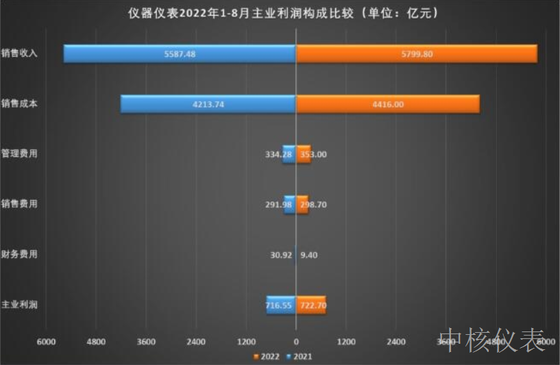 近日,中國儀器儀表行業(yè)協(xié)會發(fā)布了2022年1-8月儀器儀表行業(yè)經濟運行概況。1-8月儀器儀表行業(yè)實現主營業(yè)務收入5799.80億元,同比增長3.80%、比上年下降17.22個百分點。凈增21...
